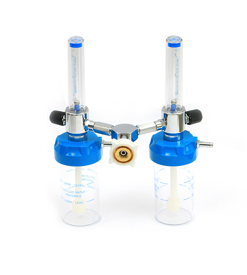 配套于醫(yī)用中心供氧系統(tǒng),供醫(yī)療單位急救給氧和缺氧病人氧氣吸入用。一分為二氧氣吸入器,一個進(jìn)氣接頭兩個出氧口,氧氣流量部分可獨(dú)立控制,互不影響。